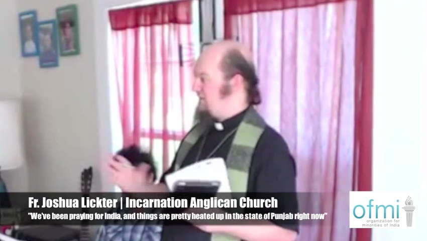 Sacramento, CA: Oct. 20, 2015 — Fr. Joshua Lickter, whose Christian church in California, USA regularly prays for persecuted religious minorities in India, brought attention to the current tense situation in Punjab, India as an item for prayer during a recent service. “Things are pretty heated up there right now in the state of Punjab,” he says before leading his congregation in prayers for peace, justice, and protection for peaceful protestors. The video was taken during a live-stream of the service.