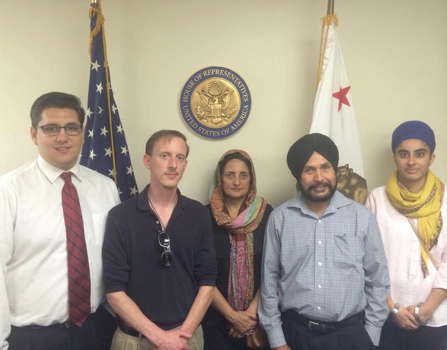 San Jose, CA: May 15, 2015 – A delegation joined Devinderdeep Kaur Sran on Wednesday to appeal to four U.S. congressional representatives to speak in honor of her father, Surat Singh Khalsa, a permanent resident of the United States who lives in California but has been on hunger-strike in Punjab, India since January 16 in demand for release of political prisoners.
