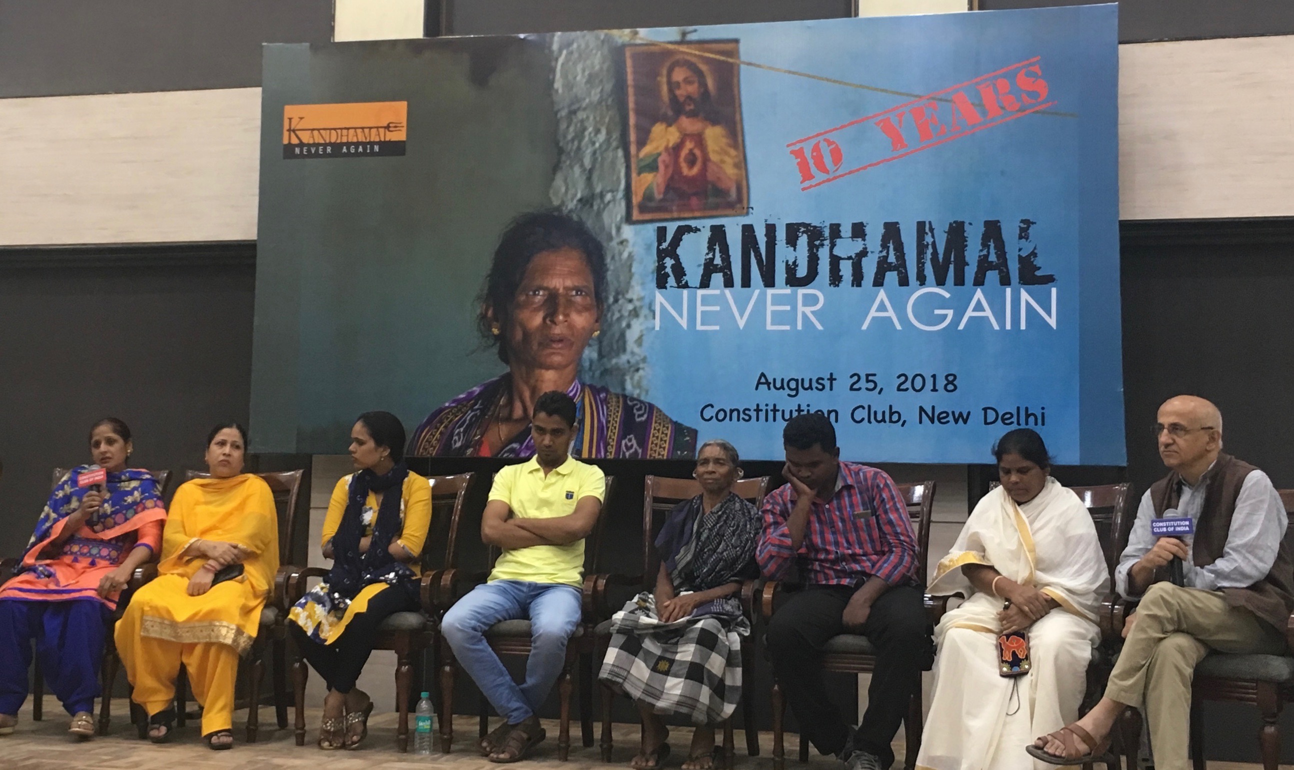 Six victims from three different pogroms spanning 34 years sat in solidarity on stage at the Constitution Club in New Delhi on August 25, the 10th anniversary of a 2008 pogrom against Christians in the Kandhamal district of India’s eastern state of Odisha. Social activist Harsh Mander, who has personally led teams to investigate violence in Odisha, moderated the panel which also included victims from the 1984 Sikh Genocide in Delhi and the 2013 Muzaffarnagar Pogrom in Uttar Pradesh.