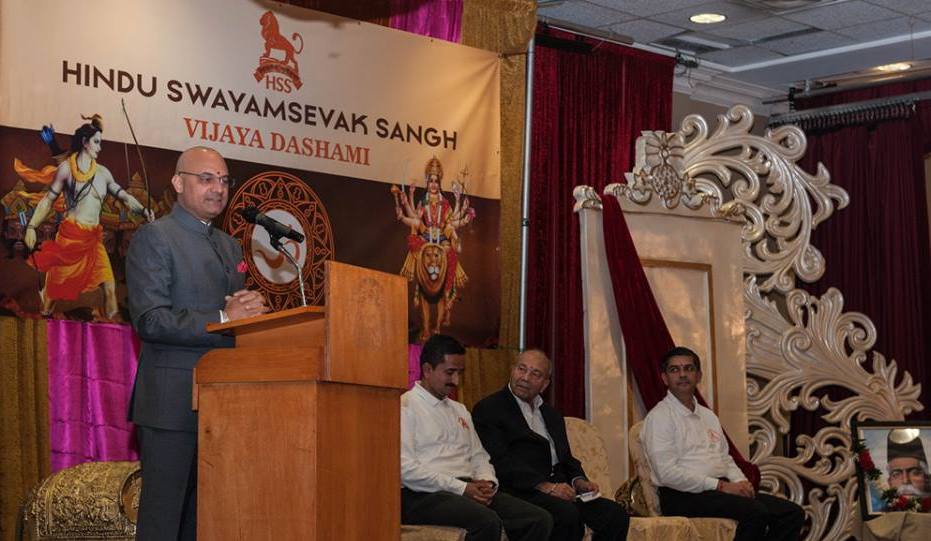 ONTARIO, Canada: Oct. 31, 2018 — Some minorities of Indian origin are asking for Dinesh Bhatia, the Consul General of India’s Toronto consulate, to resign after he appeared as the keynote speaker at an Oct. 19 event which was hosted by Hindu Swayamsevak Sangh (HSS), the international wing of Rashtriya Swayamsevak Sangh (RSS), the world’s largest paramilitary.